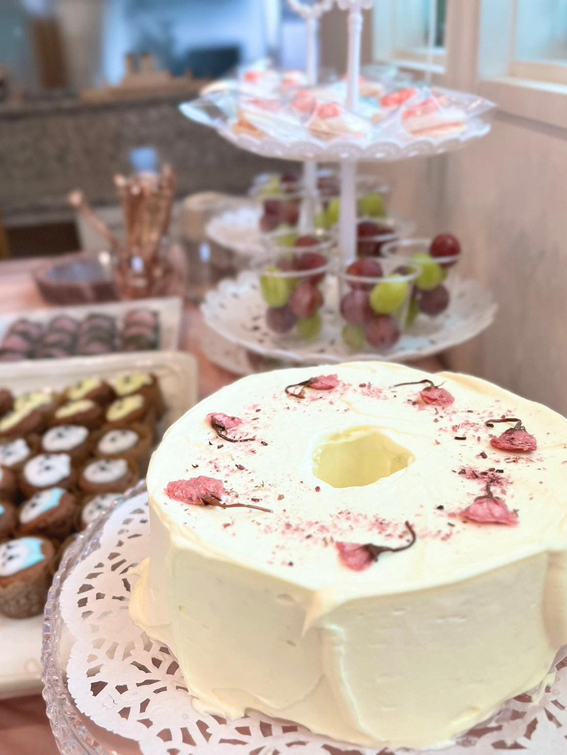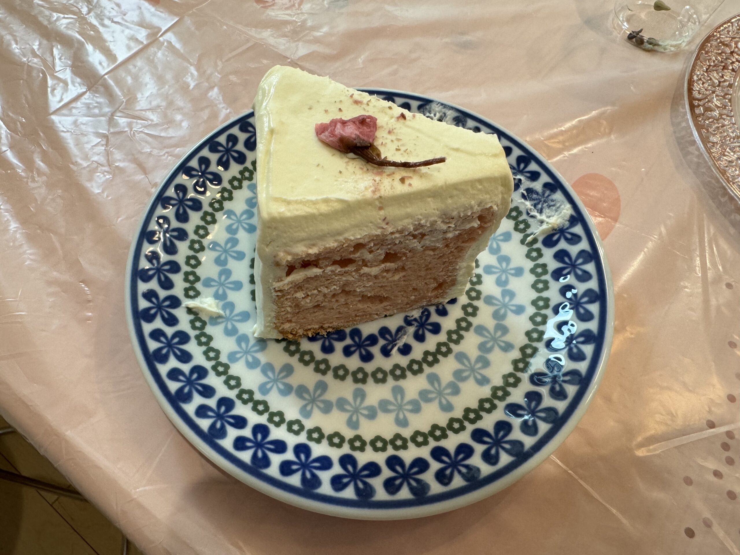- バースデーケーキ以外にも桜のケーキが。私も頂いた。