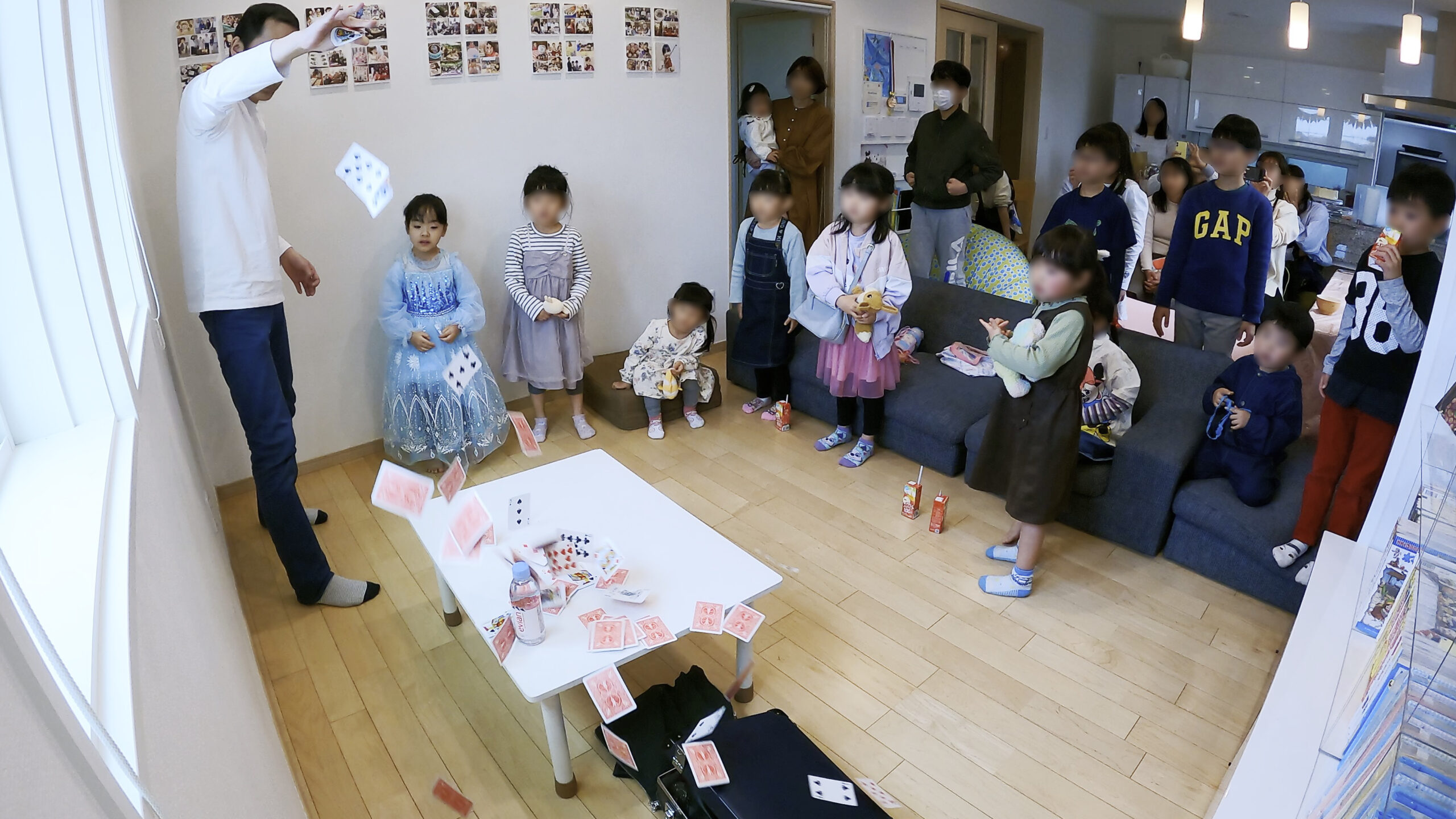 こちらの家族はお兄ちゃんが小さいころにアメリカに住んでいたそうでその時の誕生会にマジシャンを呼んでマジックショーをやったとのこと。それで妹の時もということで呼んでくれた。