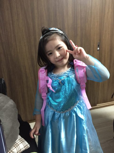 誕生日の女の子はアナと雪の女王が好きな様でケーキにはエルザ?と服も可愛らしいのを着ていた。