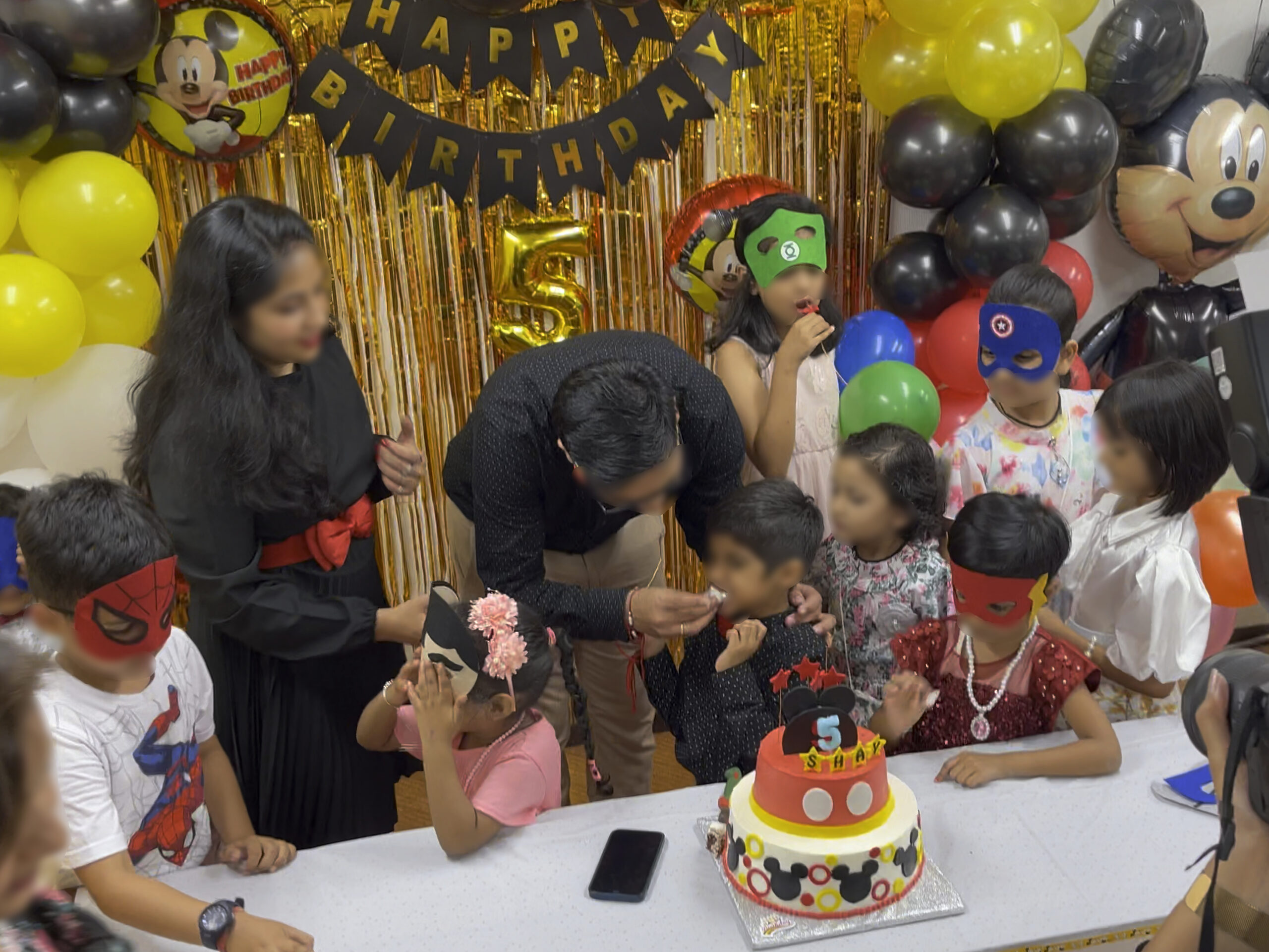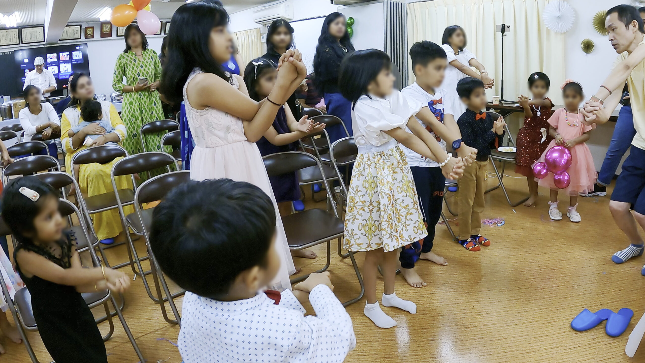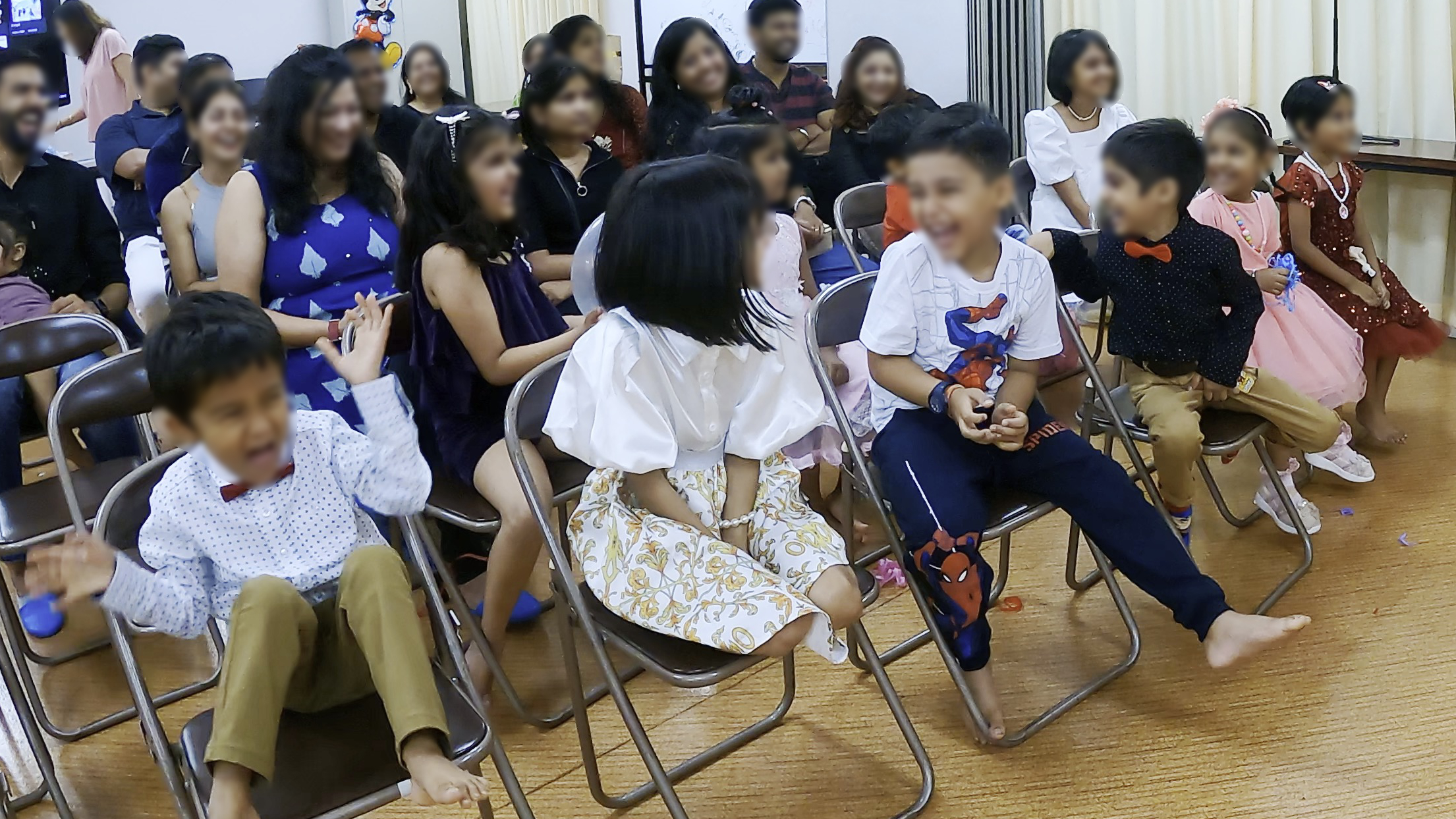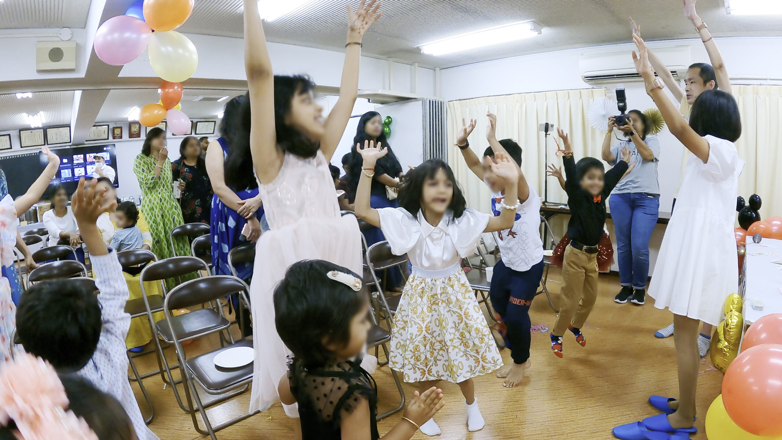 - 会場はマンションの集会室でミッキーのバルーンなどで飾り付けがされていた。