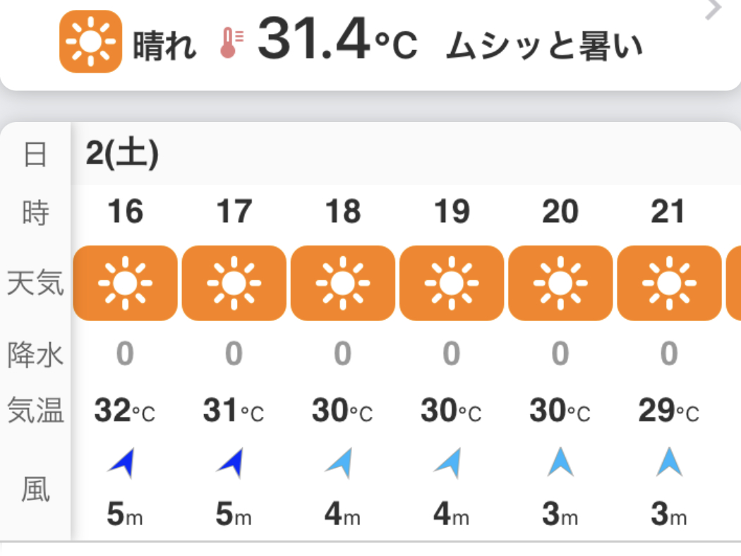 - 夕方でも暑い。雨でなくって良かった。