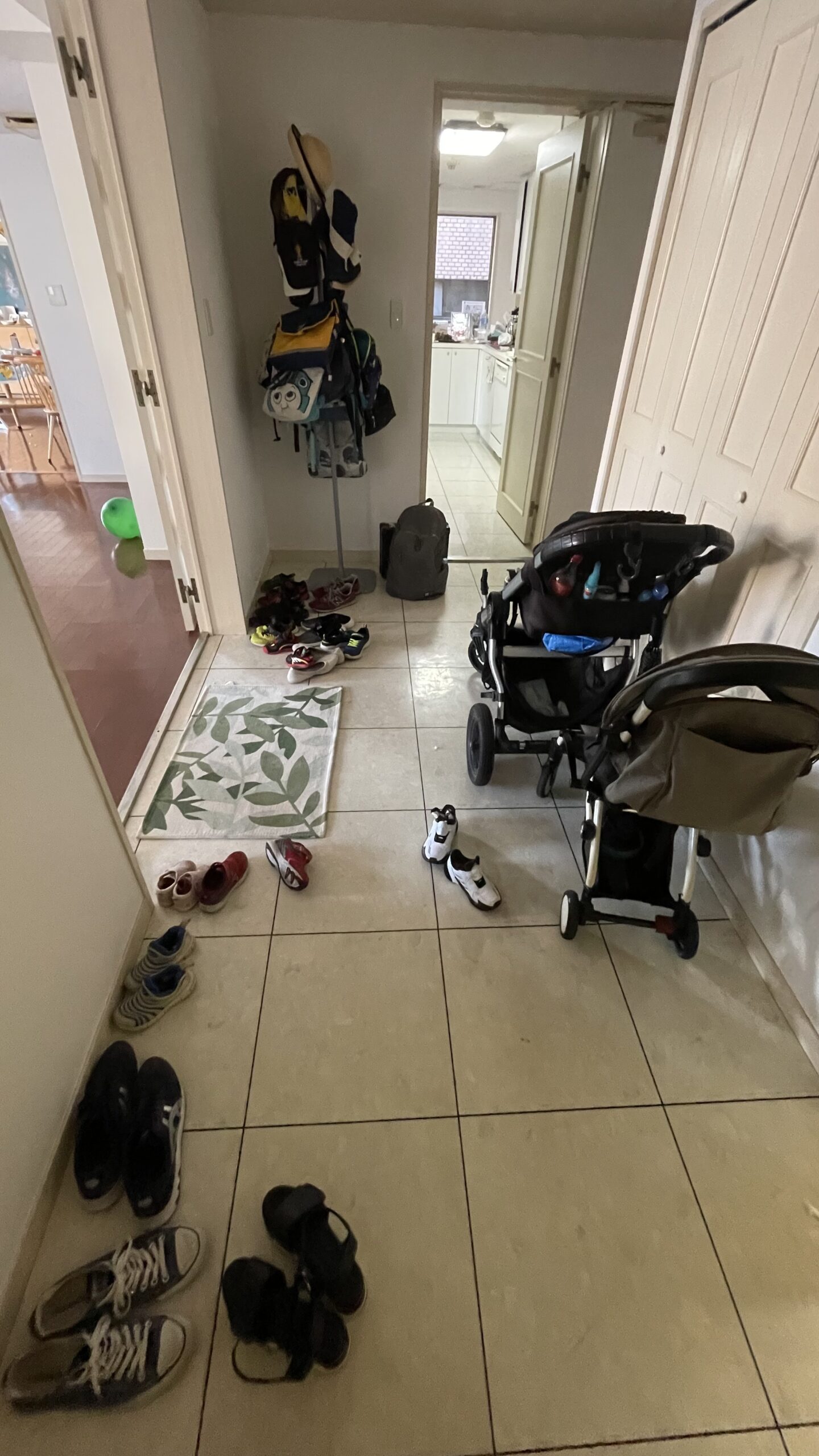 玄関はフラットだった。都内だとこういった玄関が多い。外国人向けみたい。日本の玄関みたいに段差がないんだよね。広くてオープンでいいなと思う。