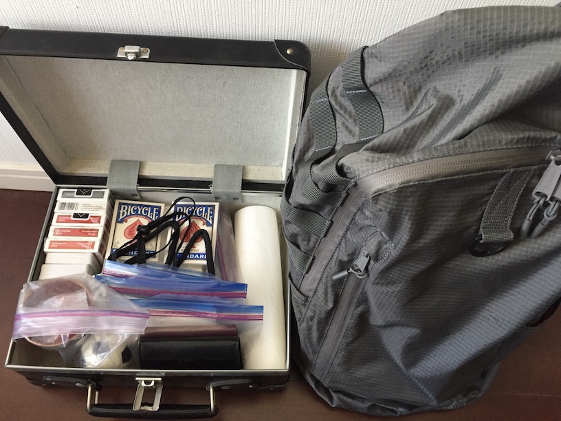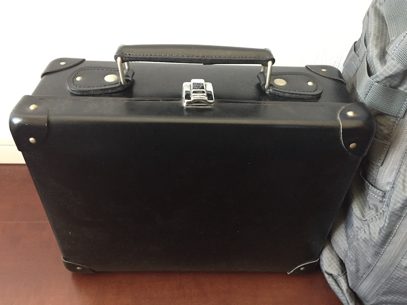 今日のカバンはグローブ・トロッターの13インチ。小さいけど厚みが少しあるので16インチとそれほど変わらずに入ります。