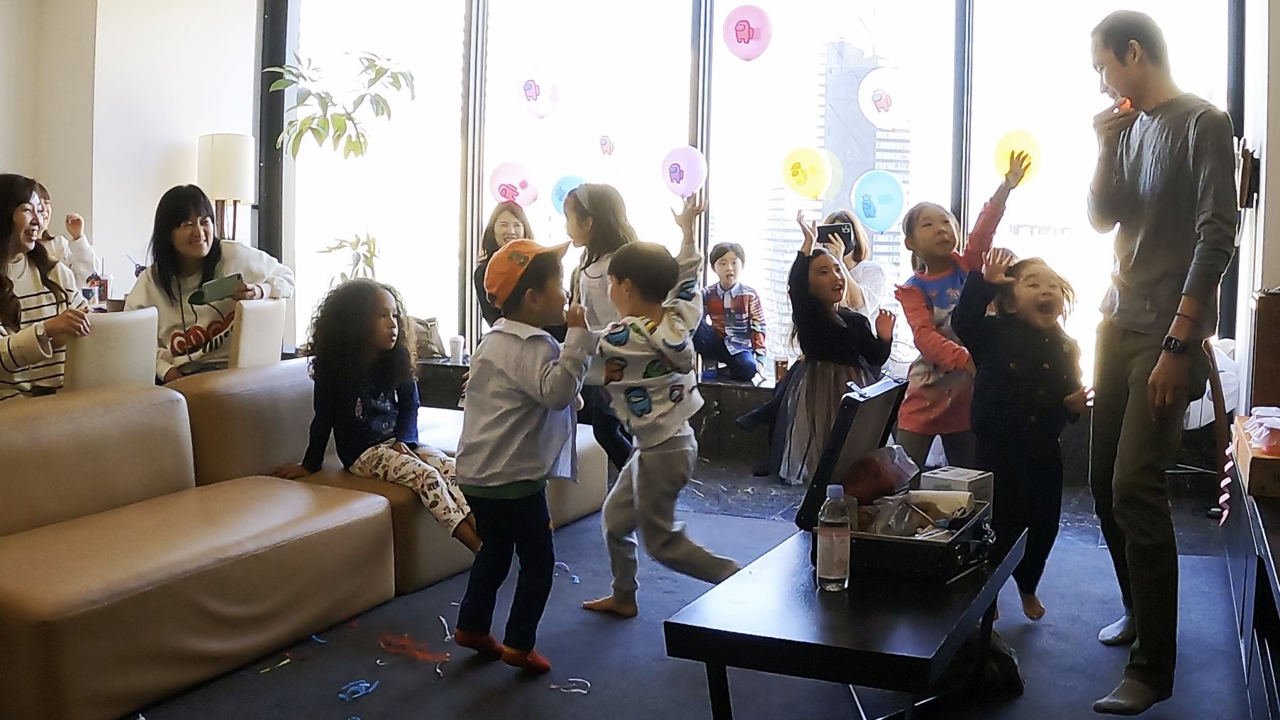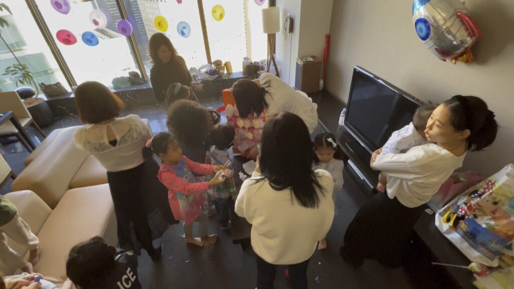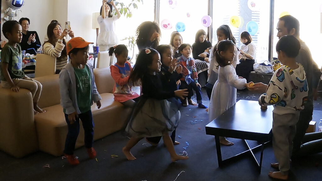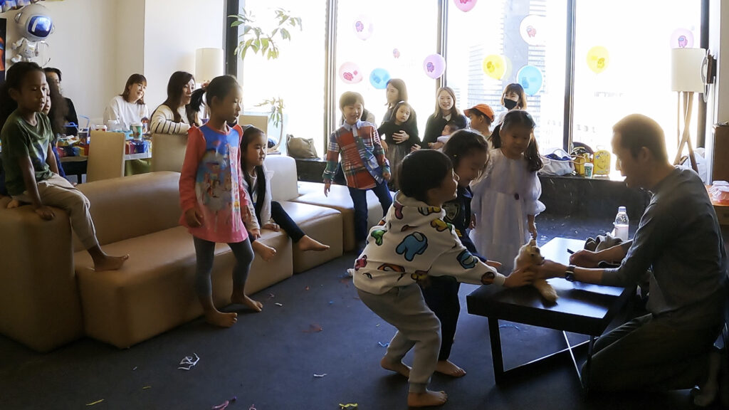 客は韓国出身の方だったので韓国の方が多く、あと英会話スクールで一緒の日本の子の家族が招待されていた。