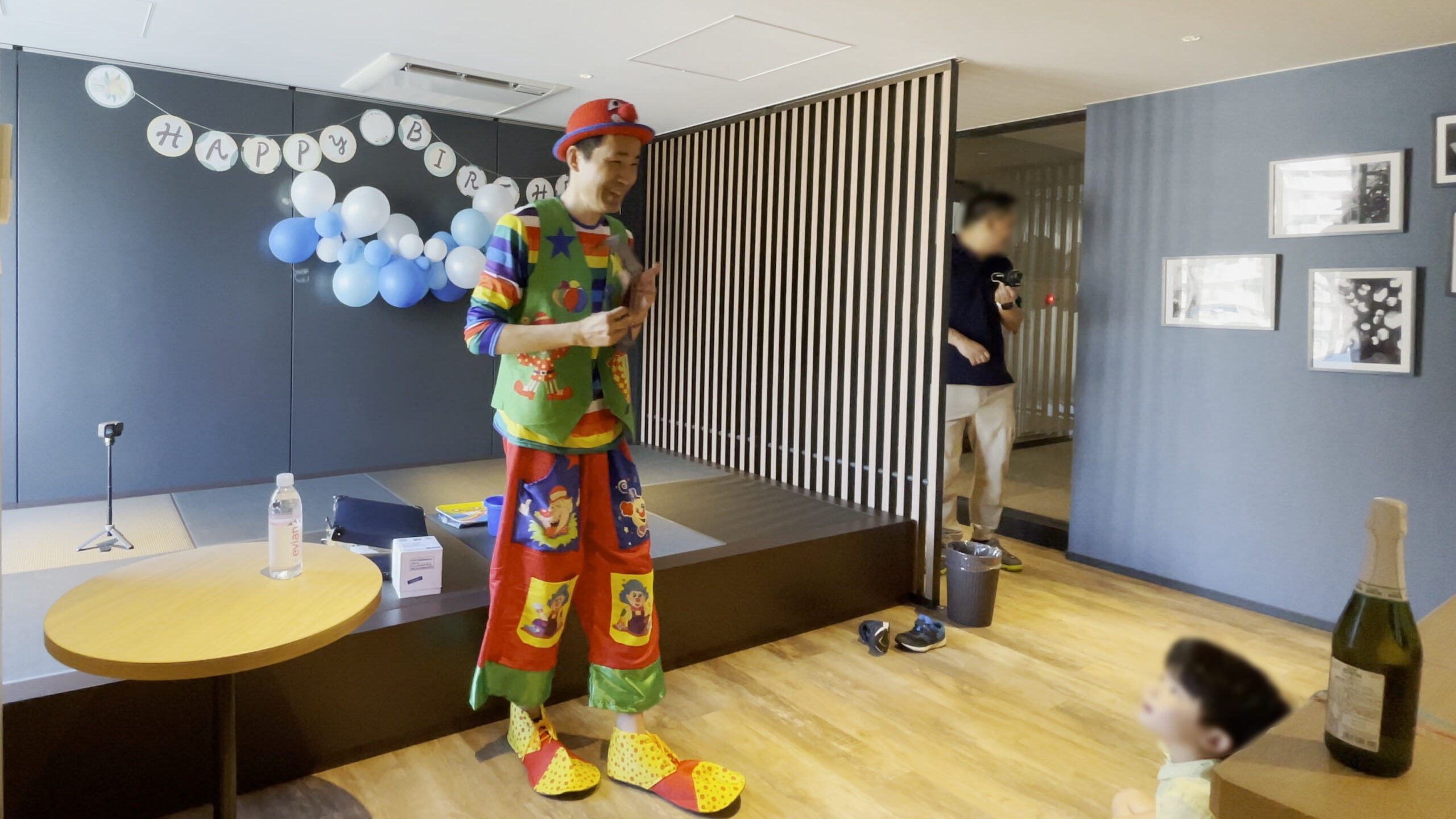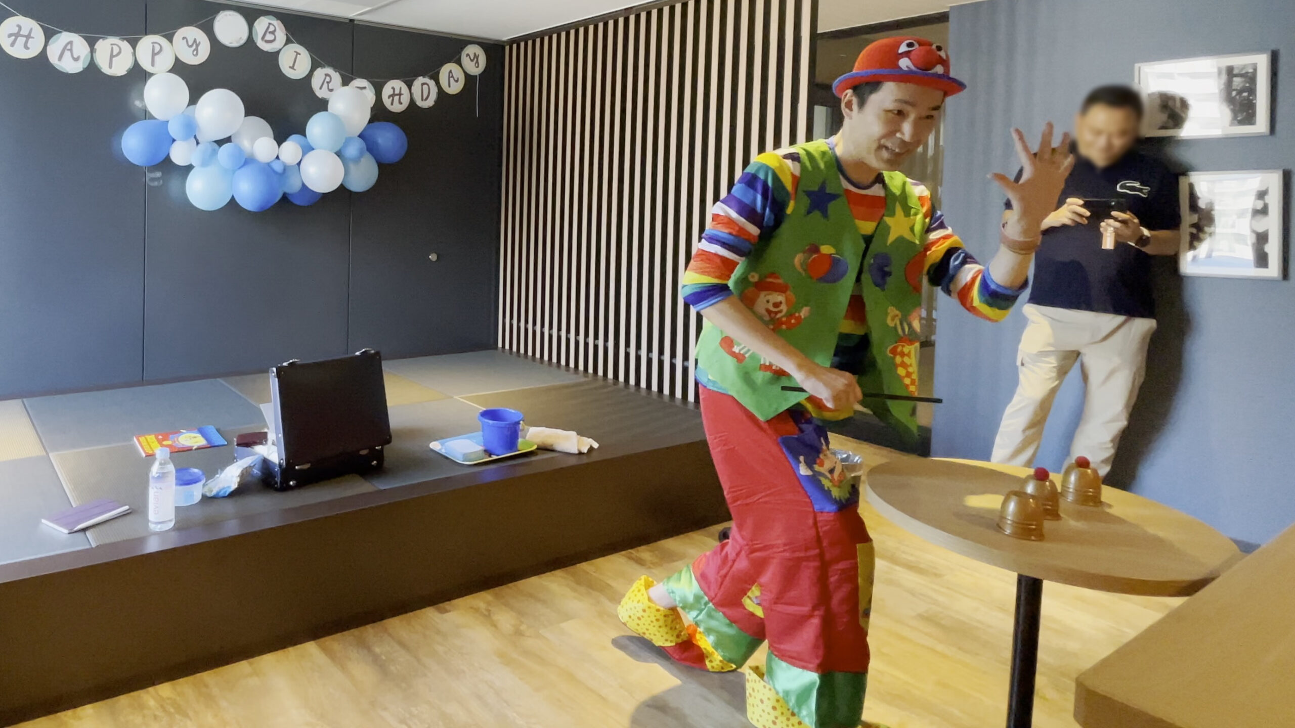 今回客の要望で客が用意したピエロの格好でマジックをやった。