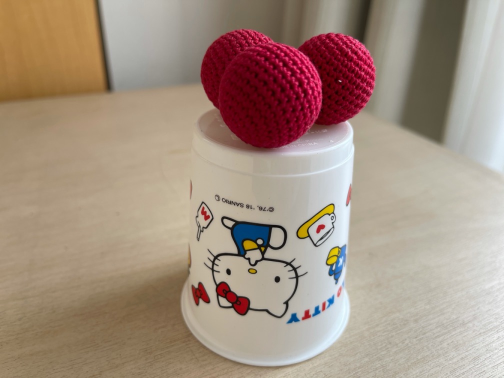 誕生日の子はハローキティが好きだと聞いてたので前にダイソーで買ったキティちゃんのカップを使ってカップアンドボールを実施。