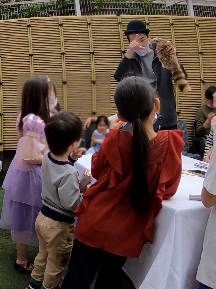 子供たちはインターナショナルスクールに通っている子たちなので簡単な英語を使ってマジックショーをした。