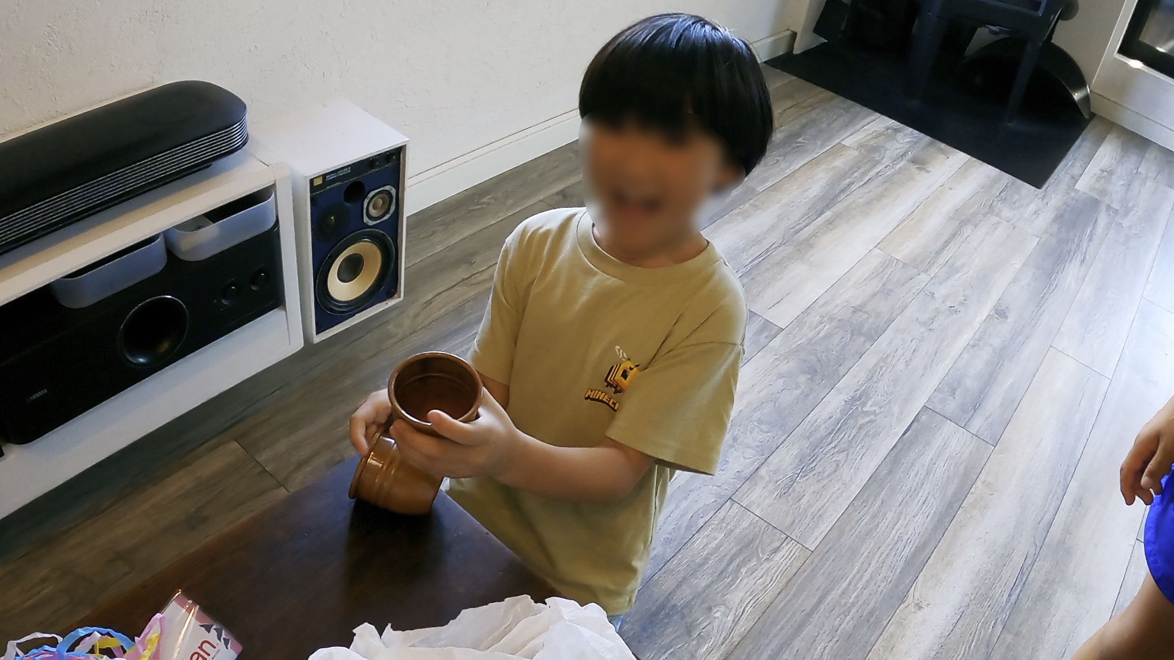 終わった後にカップがカップを貫通するのを子供達がやっていた!