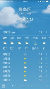 前日は都心に雪が舞ったけど今日は12℃と気温は少し上がった。