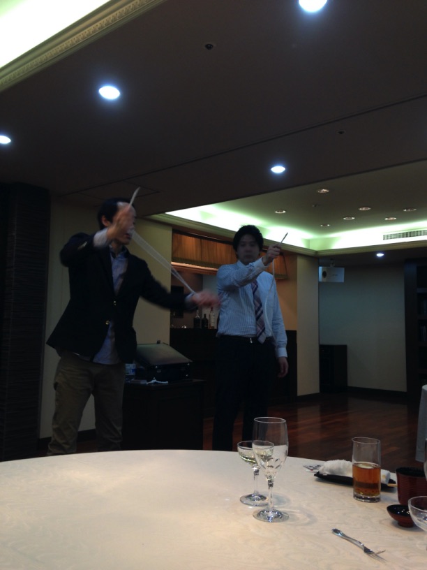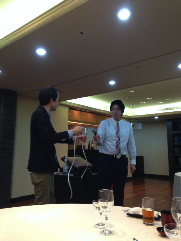 丸テーブル2卓でマジシャンは皆の前に立ってマジックを披露した。