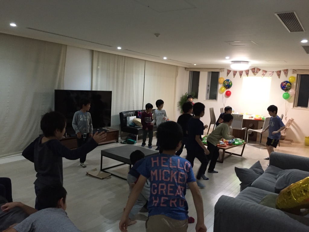 誕生日の子は9歳になる男の子で同級生のお友達や兄弟などで15名ほど、あと、親が2人。