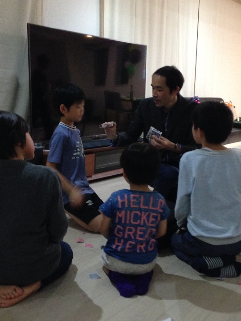 今回の誕生会はめずらしい平日開催だった。学校が終わってから集まってマジックは4時45分からの1時間。中には5時半には帰らないといけないっという子もいました。この時期だと6時ごろだとかなり暗いので少し心配ではあるが土日よりももしかしたら集まりがいいかもしれない。