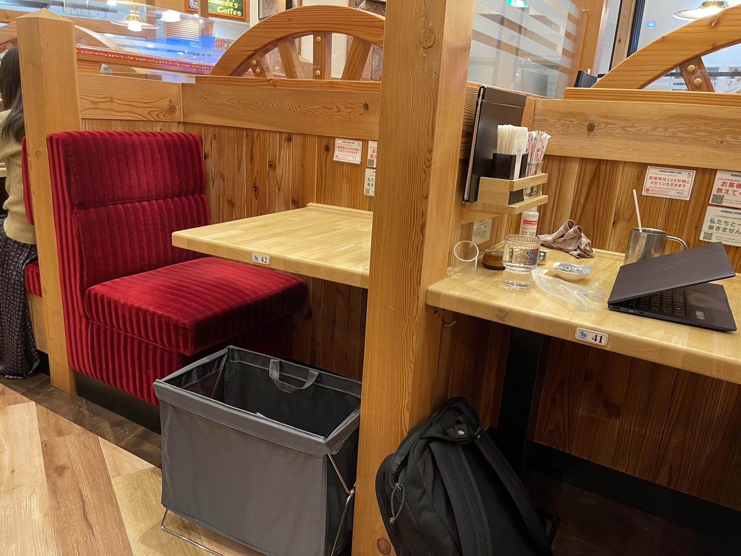 ここはノマドワーカーが多いのかな?郊外店とは違ってやけに細かく仕切られていた。