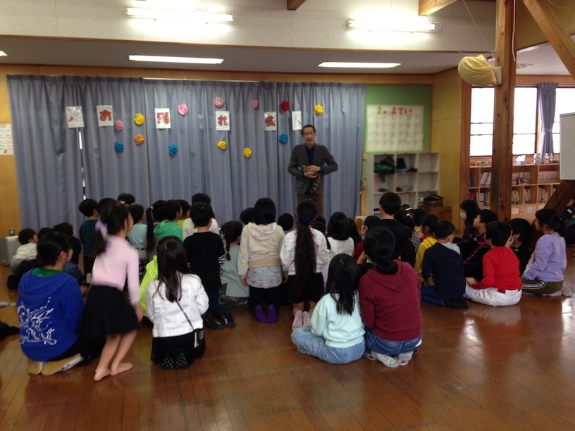 時間は14時から30分間、人数は1年生から3年生を中心に80名ほど。ここの学童保育は多くの子は3年生で最後になるそう。皆とても元気だった。