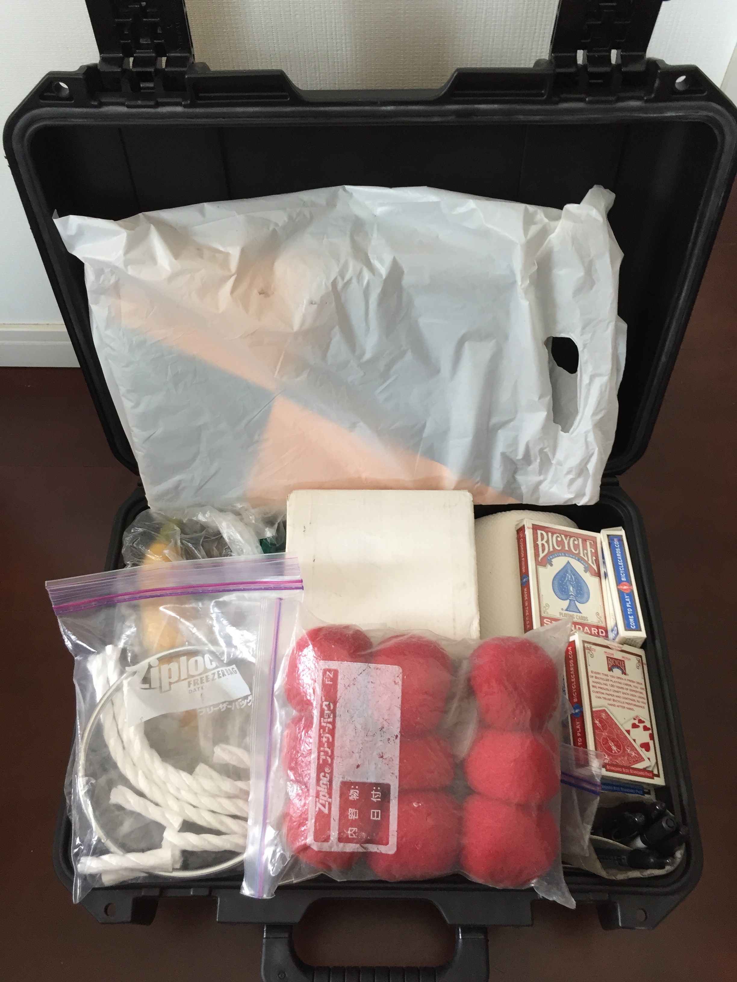 今回マジック道具を入れるカバンに最近買ったばかりのペリカンの鞄を初めて使った。