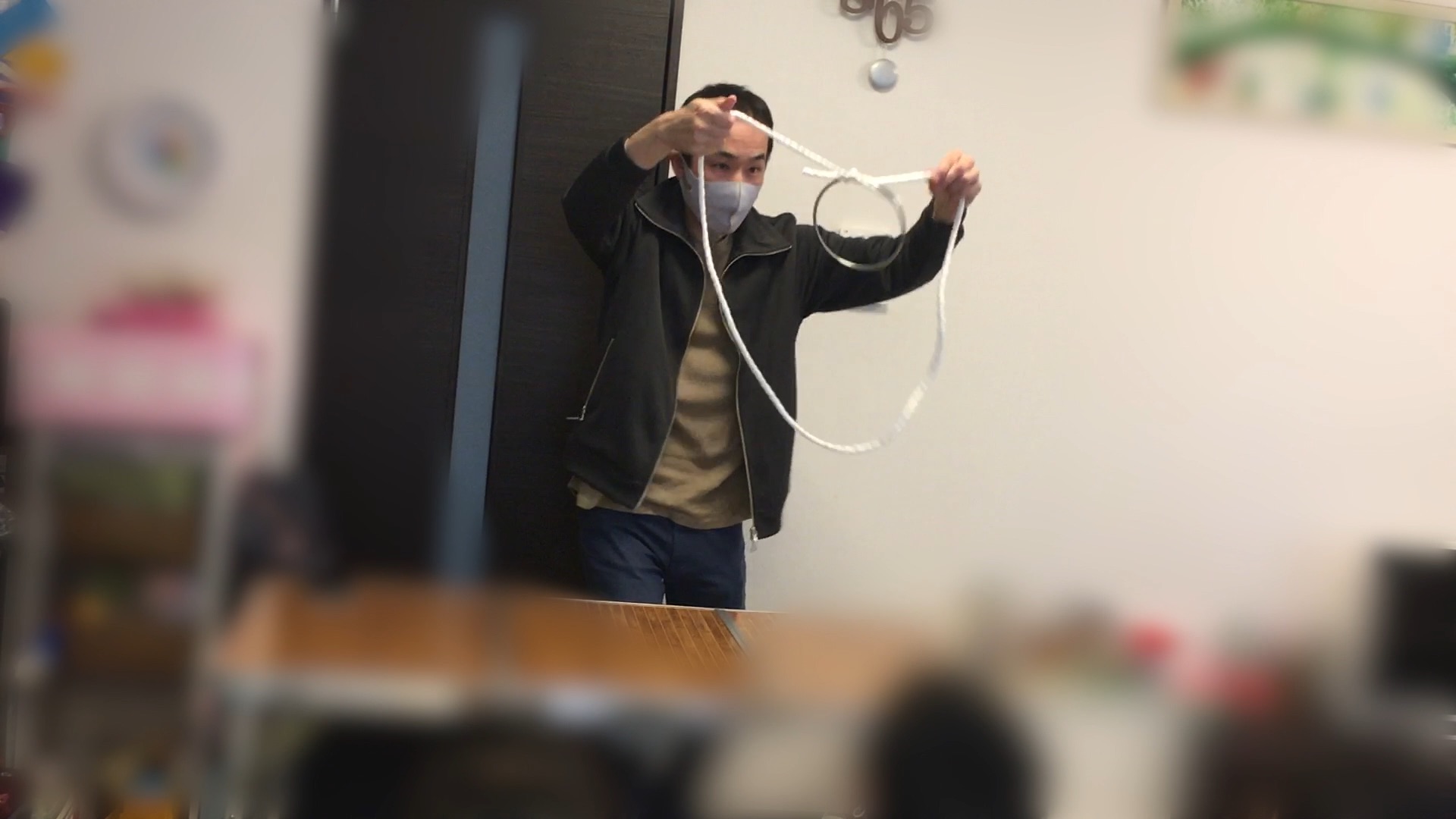- ロープとリングがくっついたり離れたりチョキで切れたり長さが変わったりくっついたり。