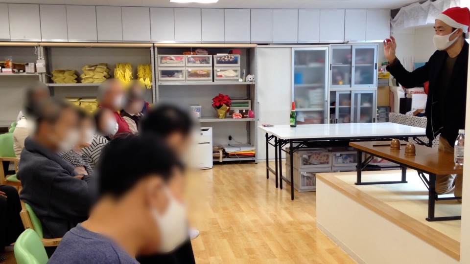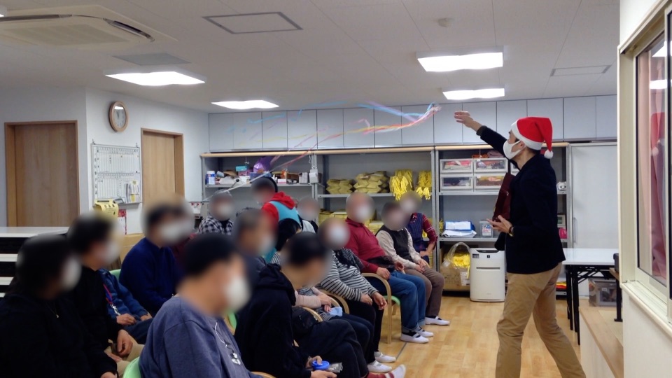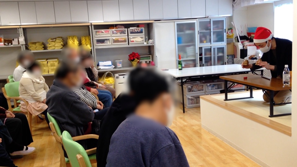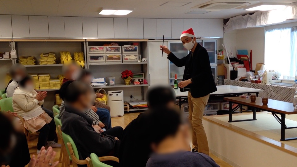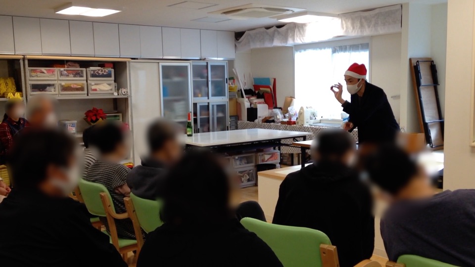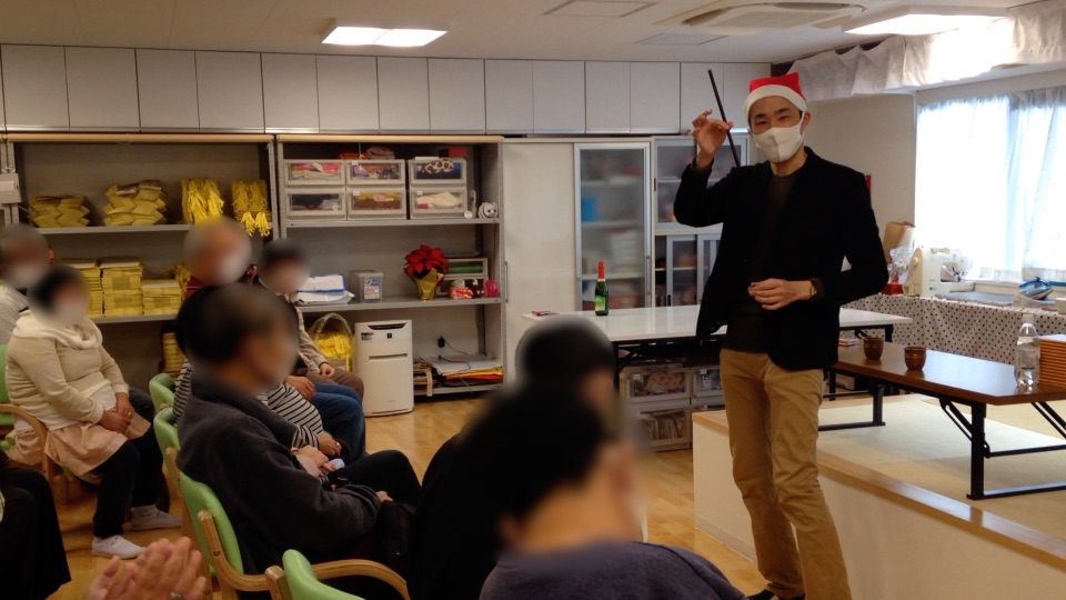 12/24/20(木) は東京都東大和市にある就業継続支援ライブリィ工房でのクリスマス&忘年会イベントでマジシャンの出張/派遣マジックショー だった。