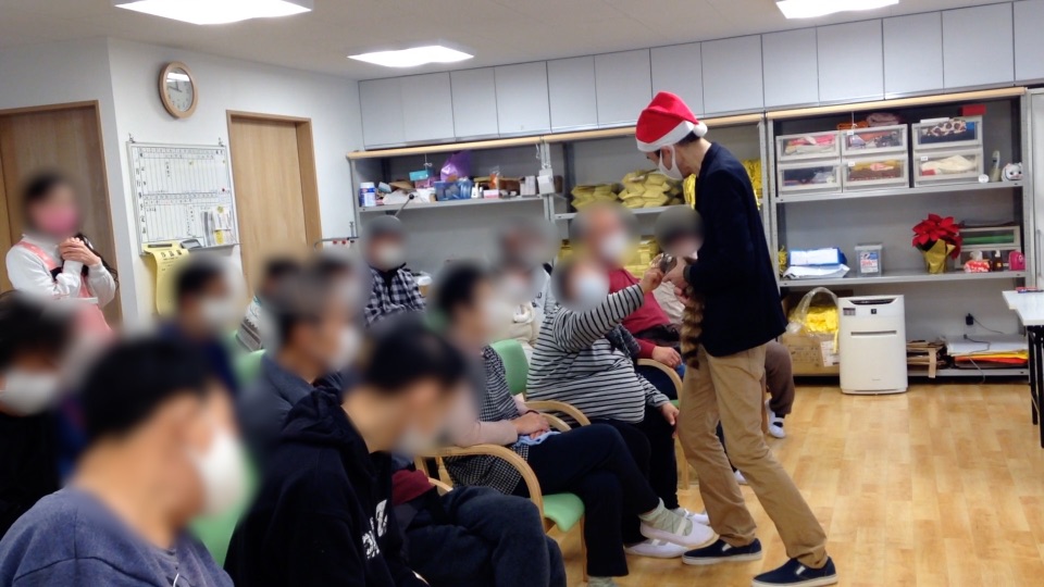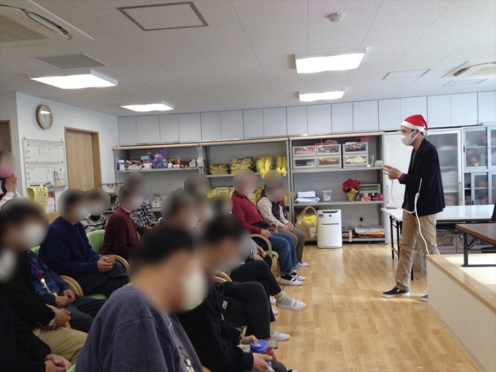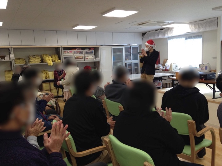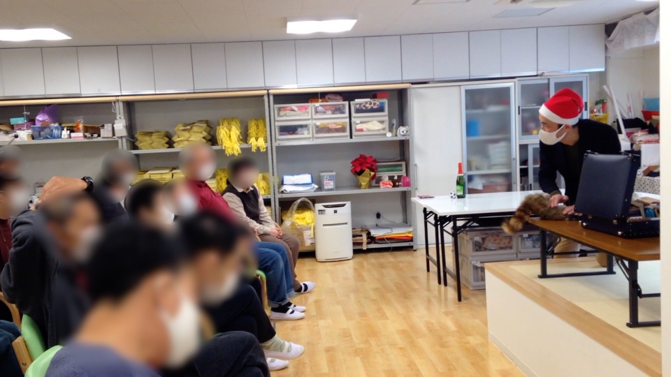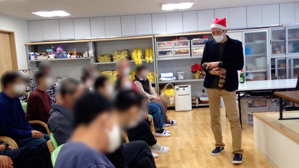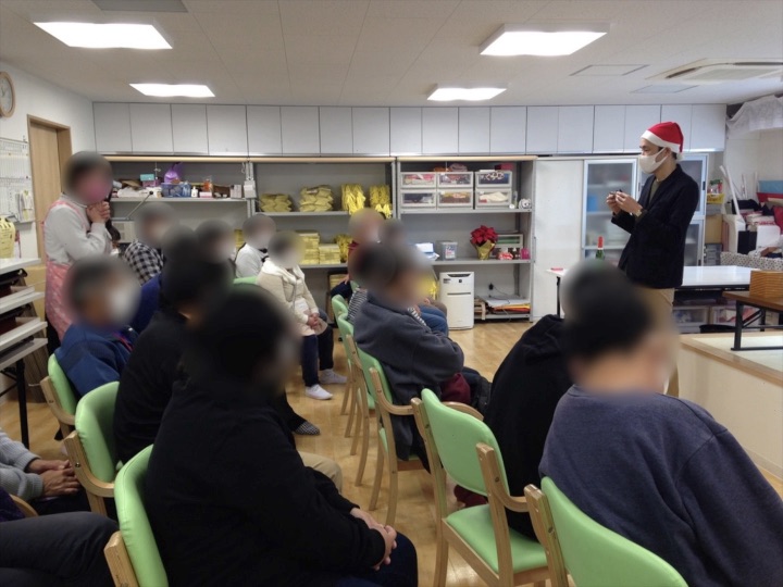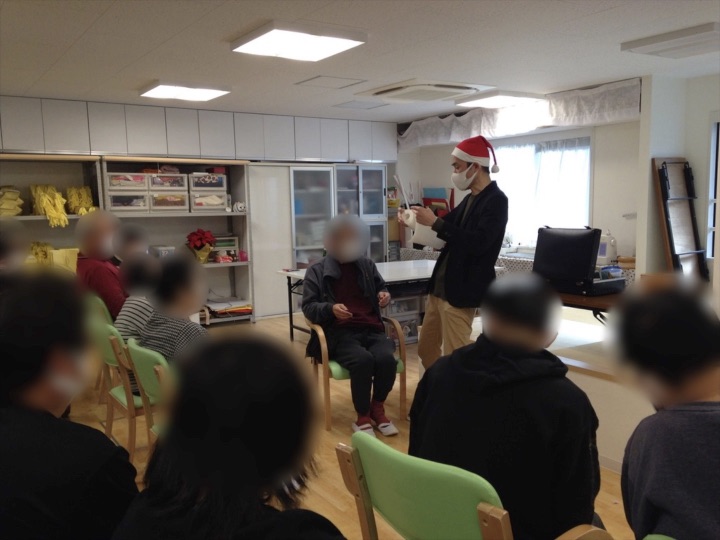 12/24/20(木) は東京都東大和市にある就業継続支援ライブリィ工房でのクリスマス&忘年会イベントでマジシャンの出張/派遣マジックショー だった。