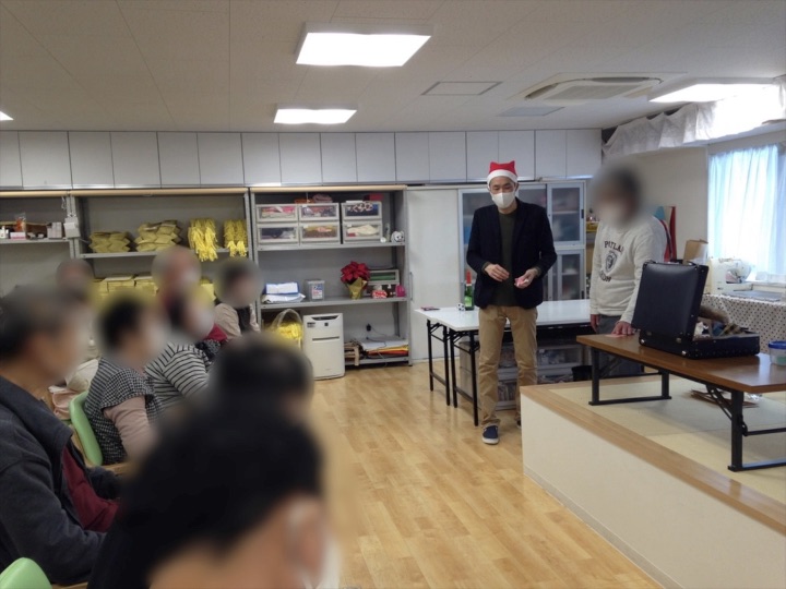 就業継続支援ライブリィ工房クリスマス&忘年会イベントで出張マジックショー 東大和市東京都
