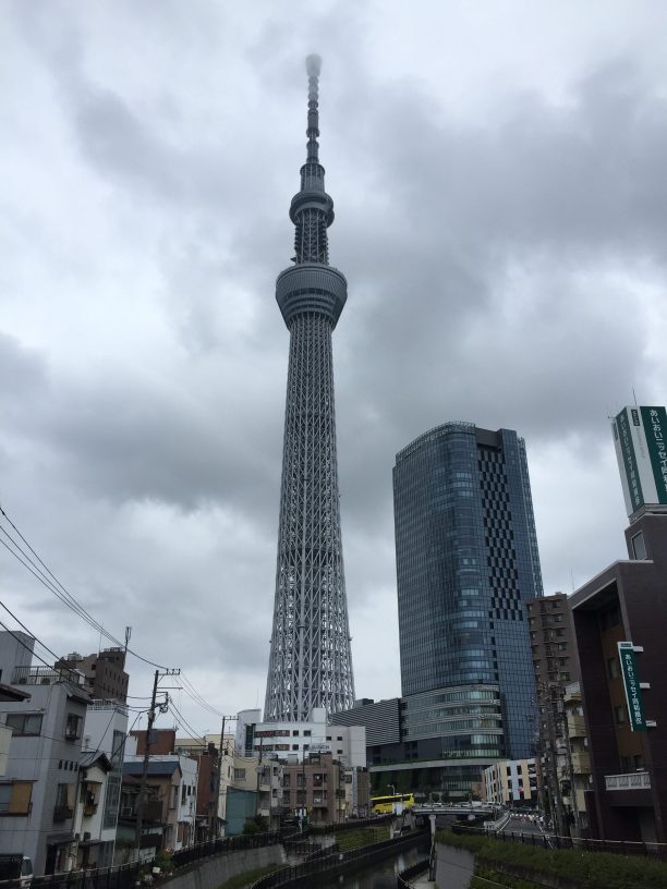 1枚目 9時頃到着した時に撮ったスカイツリー。小雨が少し強くなったので傘を差した。