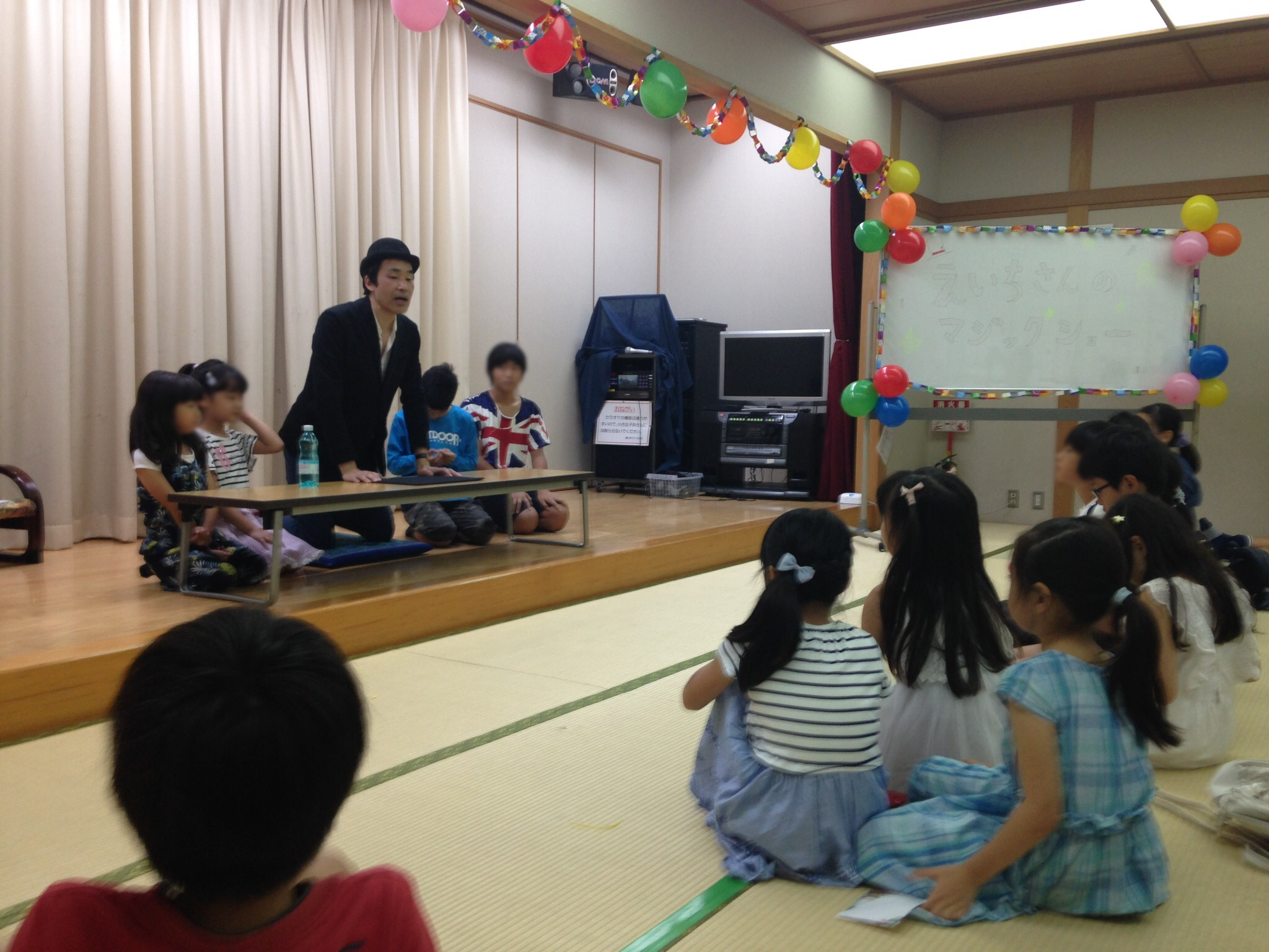マジックが始まる前にお母さん方が室内を綺麗に飾り付けをしていた。