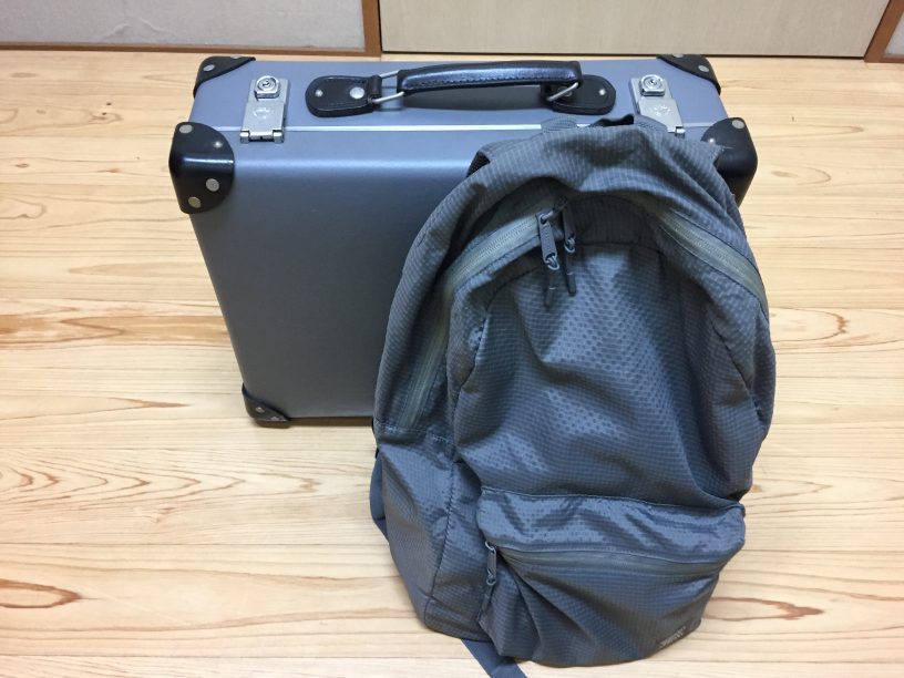 1枚目 鞄はグローブ・トロッターの18インチを使った。これは少し大き目なので子ども会などの時によく使います。鞄が平らなので場合によってはこの上でカップアンドボールを演ったりすることも出来る。