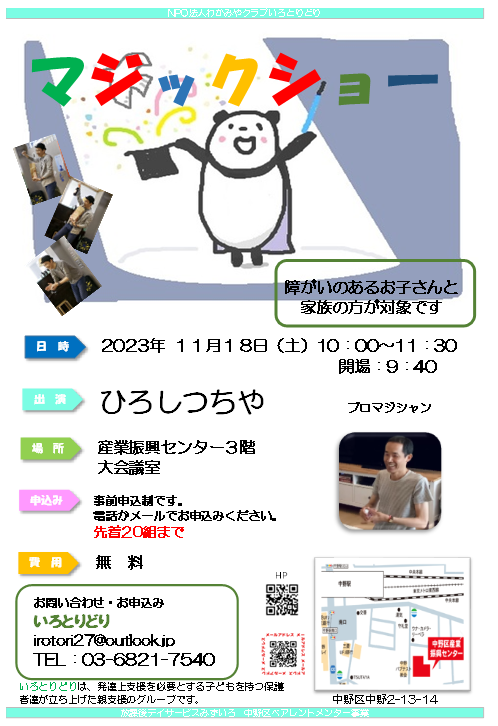 11.18.23(土)は障がいを持った子供たちとその家族に出張のマジックショーだった。
