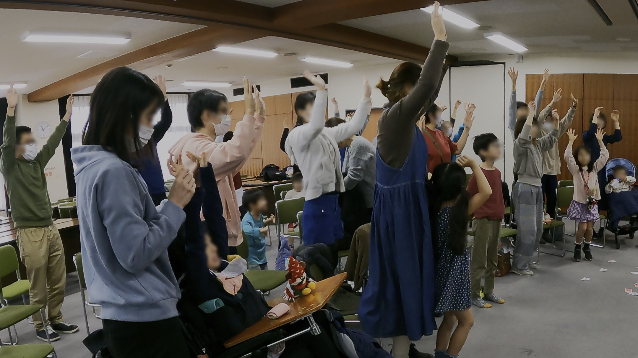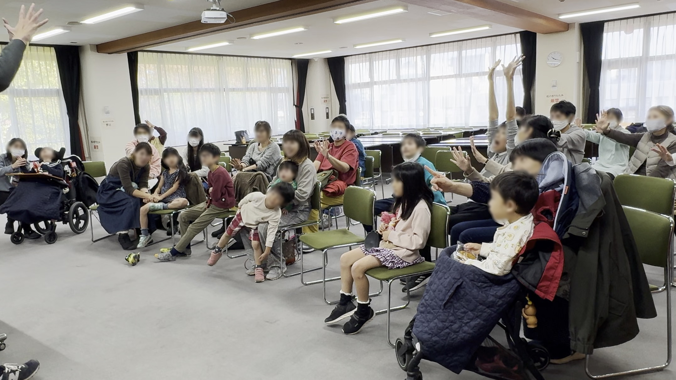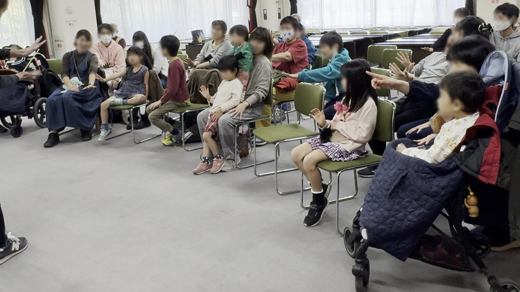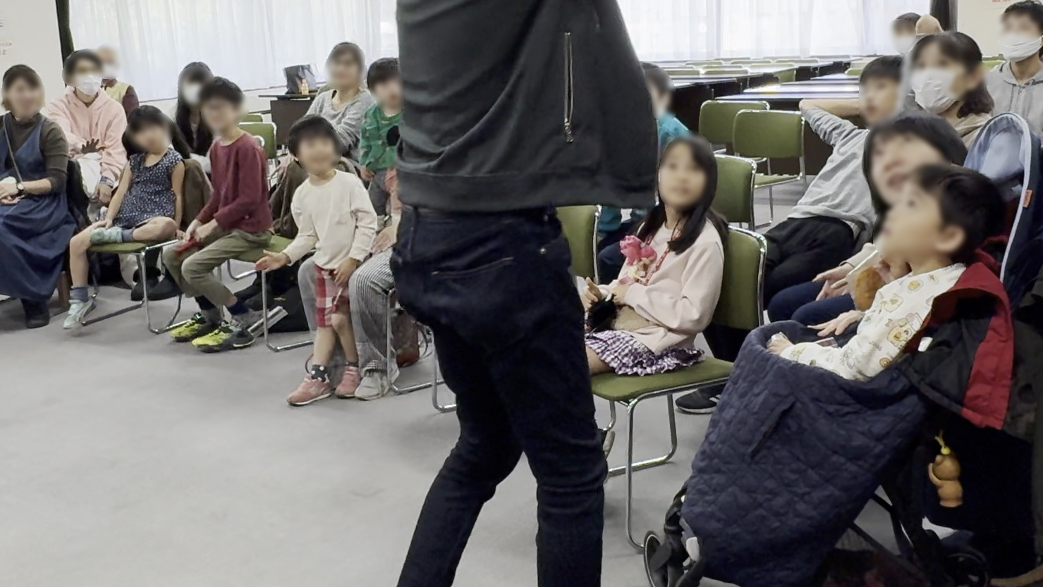 観客は障がいのある子供たちとその兄弟や親御さん方。