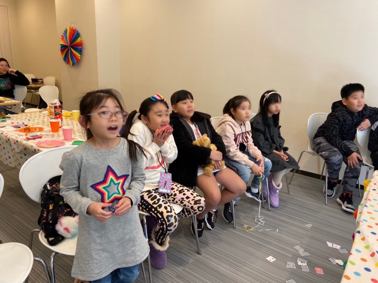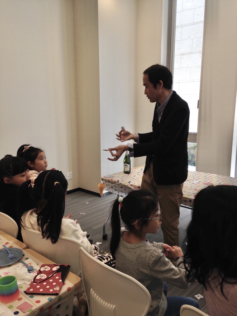 詳しく聞いてませんが皆インターナショナルスクールに通っているのかな?日本語が出来ない子がいるとのことだったので英語でマジックショーだった。