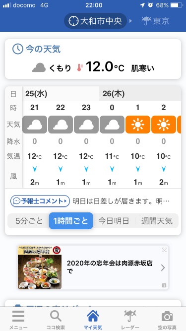 天気は昼間は雨が降ったのかな?傘を持って行くか迷ったけど結局は手ぶらで。