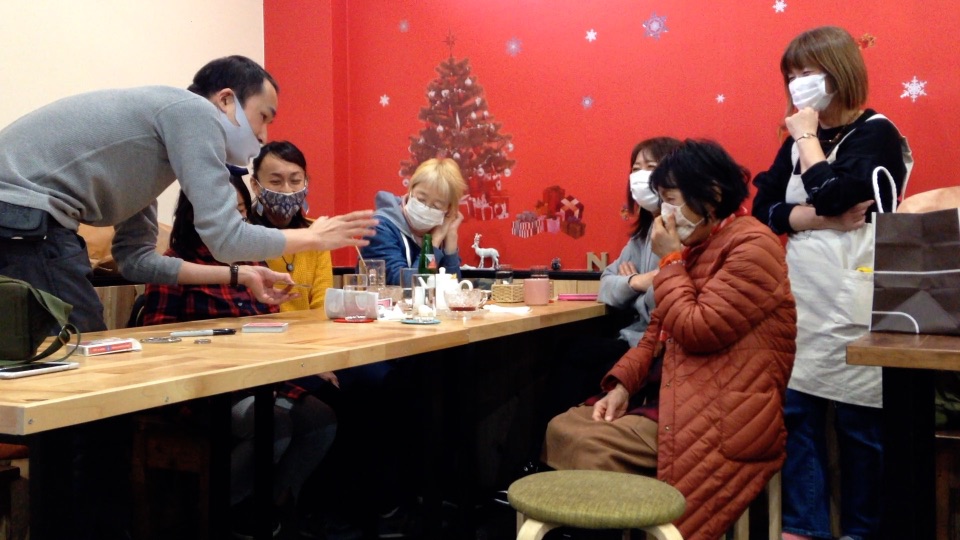 お花屋さんの飲み会でマジシャン出前クロースアップマジックショー in 居酒屋,高田馬場,新宿区,東京都