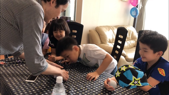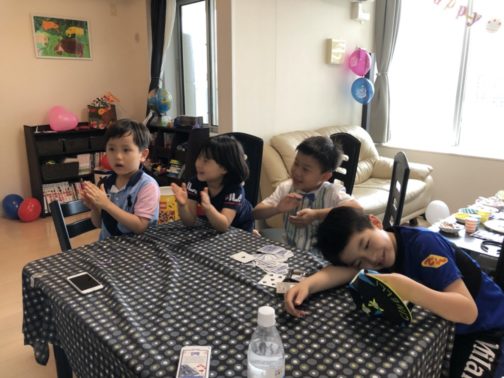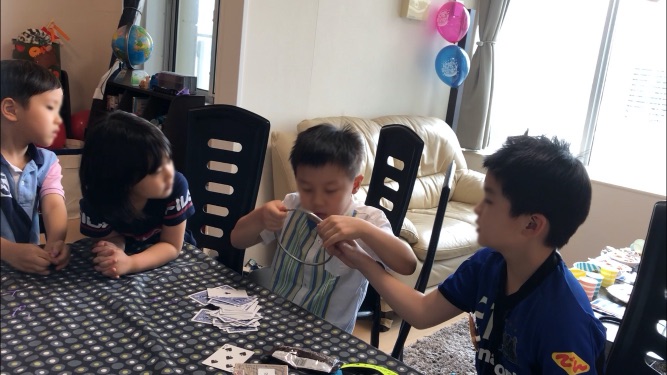 誕生日の子は8歳の男の子。コロナの影響もあり子供4名、親3名と小規模な誕生会だった。