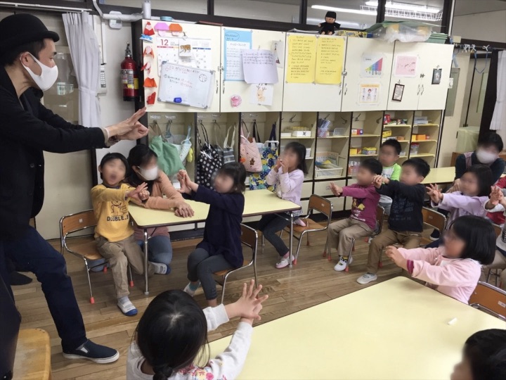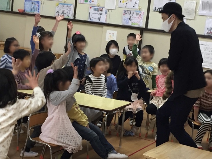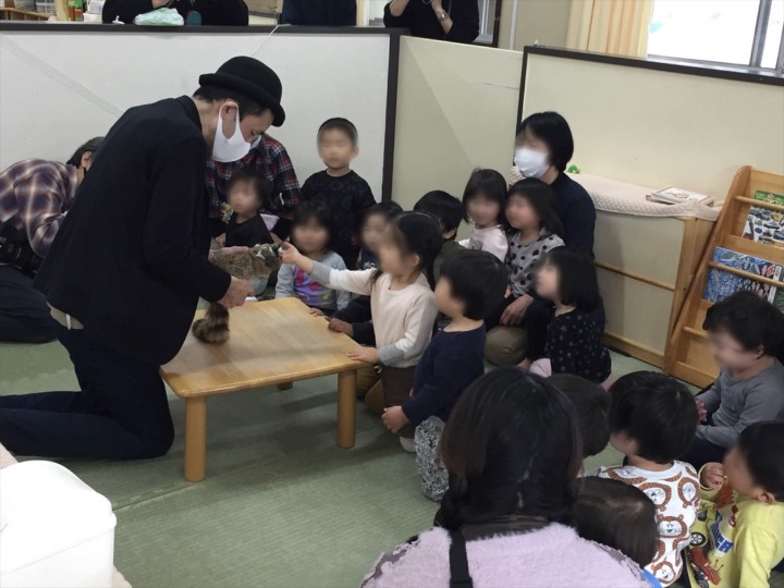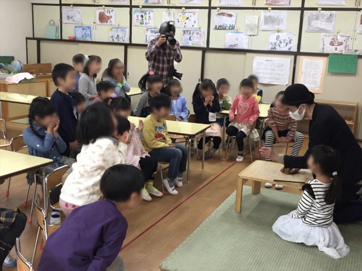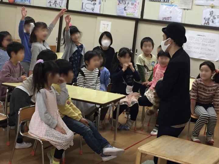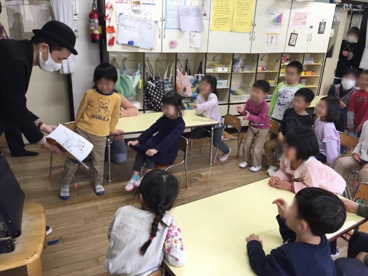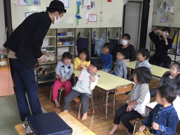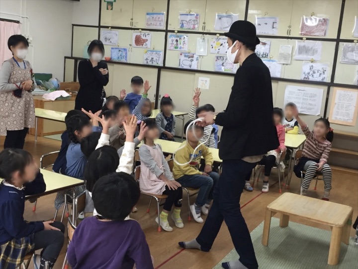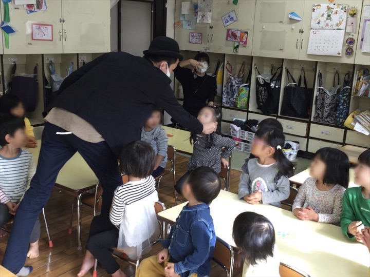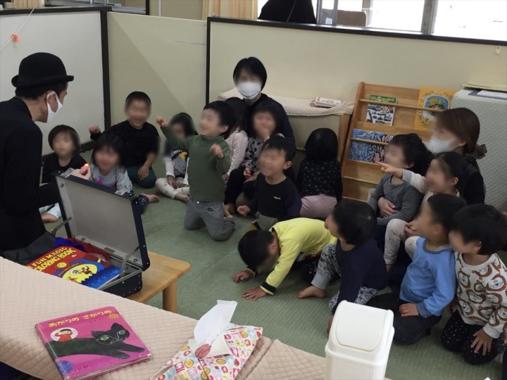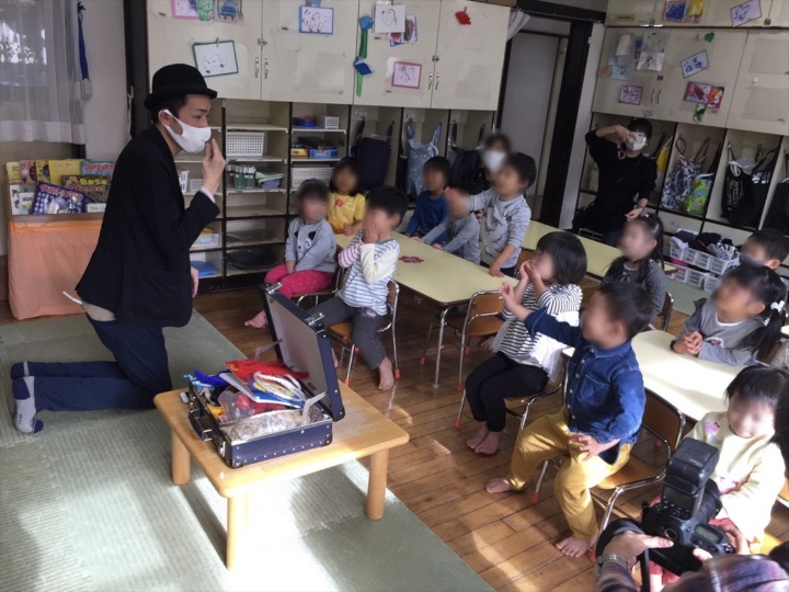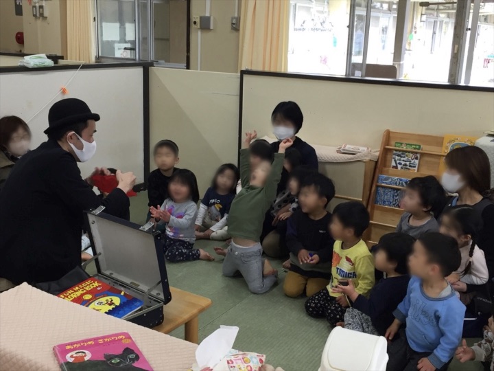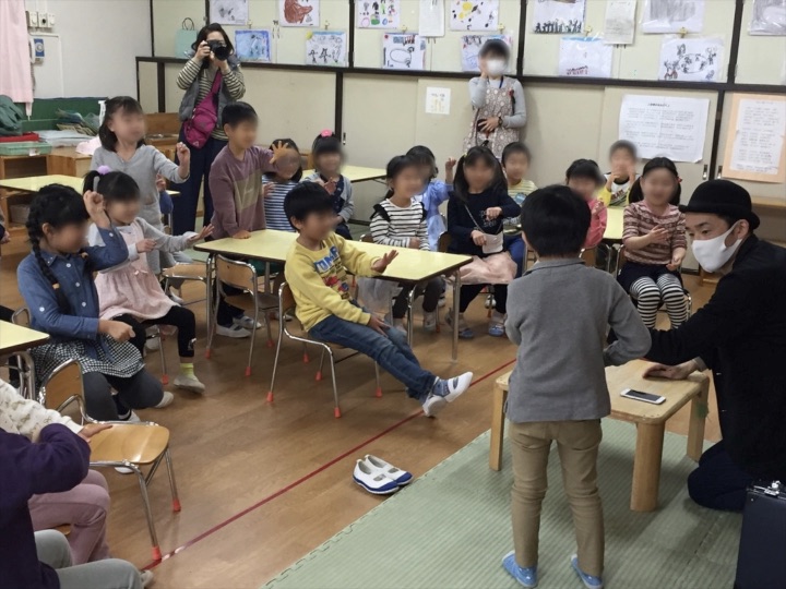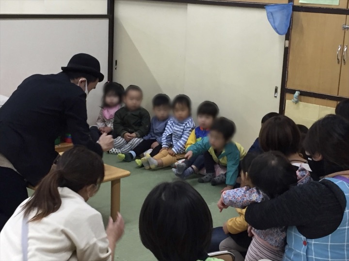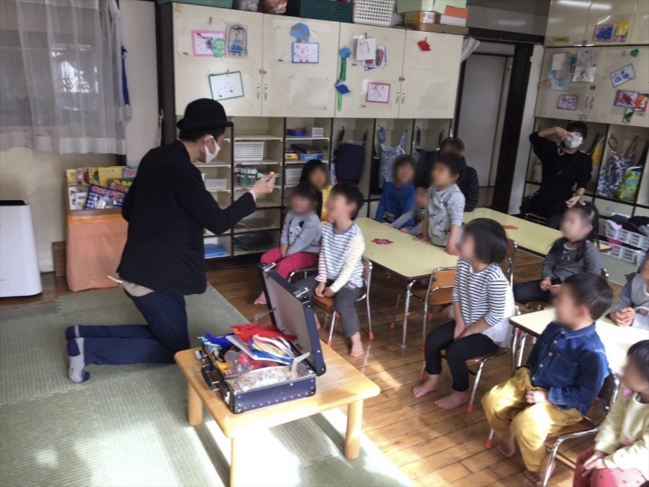 ショーの後に園長さんと話したけど今回のマジシャンが各クラスを回る方法は良かったと言っていた。普段と違う教室に移動すると不安になる園児もいるそう。