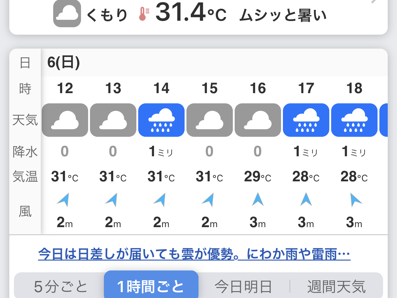- 蒸し暑い気温で晴れているのに突然雨が降ってくる変な天気だった。
