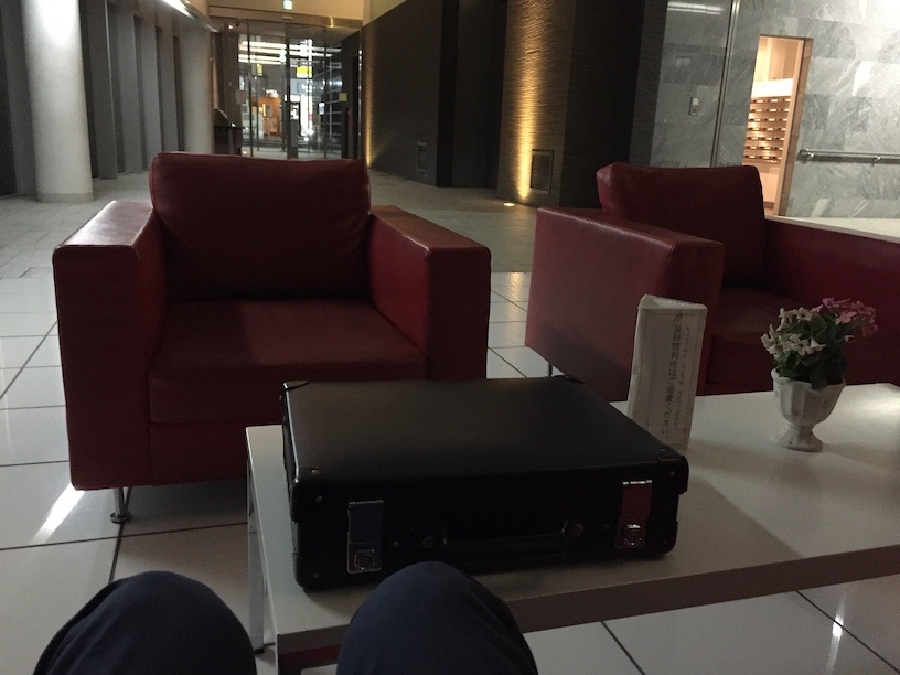 通常の場合は客の自宅の一室で準備をするのだけど今回はマンションのエントランスにソファーの椅子があったのでそこに座って準備をした。