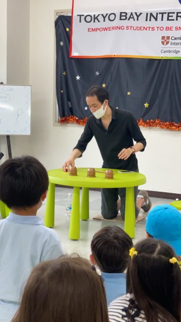 今回はインターナショナルスクールだったので英語でのマジックショーだった。