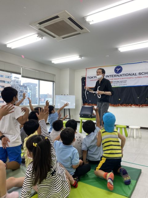 7.31.20(金)は江東区亀戸にある東京ベイインターナショナルスクールのサマースクールのイベントで出張マジックショーだった。