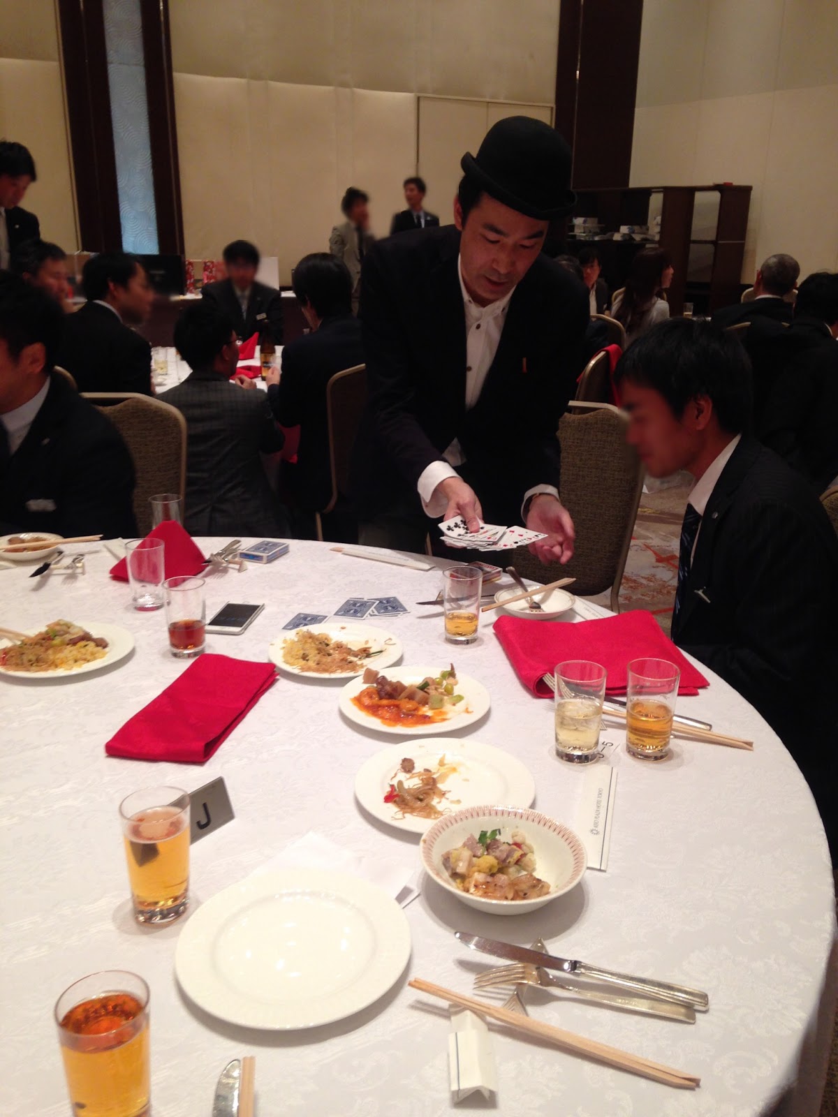 12月13日 木曜日は企業の忘年会の余興でテーブルホッピングマジクを演ってきた。